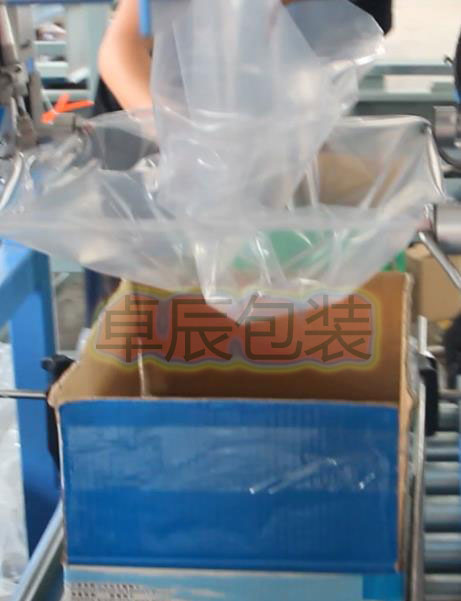 功能:在封好底部的紙箱上套上第二層塑料袋,不需要人工套袋,就可以完成自動(dòng)。提高生產(chǎn)線的工作效率。